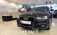 2018년식 아우디 A3 40 TFSI모델의 할인 판매가 시작된 28일 오후 서울 강서구 한 아우디 공식 중고차 판매 매장에서 소비자들이 A3 구매를 문의하기 위해 ..