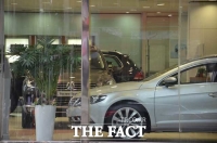31일 서울 역삼동에 있는 한 폭스바겐 전시장에는 현재 판매가능한 'CC'(사진 앞)와 '투아렉'만이 고객을 기다리고 있다. / 장병문 기자[더팩트ㅣ장병문 ..