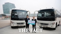 선롱버스, 킨텍스에 버스 기증 선롱버스코리아가 18일 고양 킨텍스에서 킨텍스에 선롱버스 두에고EX 2대를 기증하는 기증식을 열았다. / 선롱버스 제공 선..