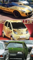 황금 페라리, 보석으로 덮인 나노, 잔디를 씌운 시트로엥(위에서부터)이 누리꾼들의 관심을 모으고 있다./ 온라인 커뮤니티 캡처 [더팩트 | ..