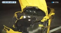 13일 새벽녘 '슈퍼카'가 사고를 일으켜 차체는 일그러졌지만, 탑승자는 큰 부상이 없다고 알려져 눈길을 끌고 있다. / YTN 방송 캡처 [더팩트 l 경제팀] ..