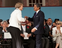 마힌드라 회장(오른쪽)이 하버드 졸업생 협회 363회 학위수여식에서 공로 메달을 인도인 최초로 받았다./마힌드라 제공[더팩트|황준성 기자] 힌드라 그..