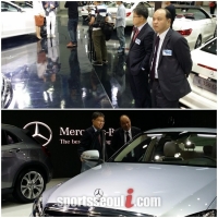 다케히코 기쿠치(오른쪽) 한국닛산 대표가 2014 부산 모터쇼에서 메르세데스-벤츠의 부스와 신차들을 살펴보고 있다./부산=황준성 기자 [더팩..
