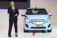 세르지오 호샤 쉐보레 사장이 2014 부산 모터쇼에서 새로운 베터리를 적용한 스파크EV를 소개하고 있다./부산=남윤호 기자[더팩트|부산=황준성 기자] 쉐..