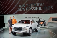 현대자동차는 유럽 디자이너 히안 리가 현대차 콘셉트카 인트라도에서 영감을 얻어 만든 의상을 2014 제네바 모터쇼에 인트라도와 함께 선보였다./현대차 ..