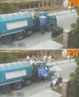 최근 유튜브에 '최첨단 쓰레기 수거 차' 동영상이 올라왔다. 이 차량은 첨단 설비를 갖췄으나 오히려 일을 더 키워 누리꾼들의 눈길을 끌고 있다./유튜브 ..