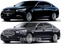 기아자동차 2014년형 K9(위쪽)이 전면부 디자인 변경과 상품성이 강화됐지만 기존 모델 대비 가격이 최대 690만원 인하돼 최근 판매량이 늘고 있다./기아차 ..