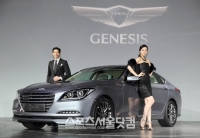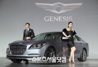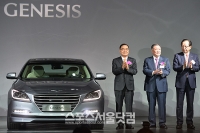 26일 현대자동차가 야심작 신형 제네시스를 국내 시장에 공개했다. 출시 기념 행사에는 정몽구 현대차 그룹 회장과 정의선 현대차 그룹 부회장을 비롯한 ..