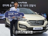 현대자동차는 16일 울산 2공장에서 소방관 박상익(40)씨에게 신형 싼타페 1호차를 전달했다. [더팩트|황준성 기자] 현대자동차가 16일 울산 2공장에서 ..