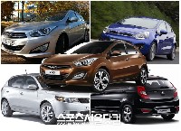 ▲ 현대차 i40, 기아차 프라이드, 현대차 액센트 위트, 기아차 포르테 해치백, 현대차 i30(가운데) (왼쪽 위 시계방향) [더팩트|황준성 ..