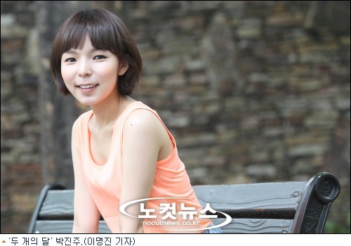 영화 '써니'에서 육두문자를 거침없이 토해내며 자신의 이름을 제대로 알린 박진주. 공포영화 '두 개의 달'을 통해 전혀 다른 분위기로 대중들을 만날 예정이다. 또래들과 신나게 놀았던 그녀는 달랑 두 명, 그것도 학창시절 TV와 스크린을 통해 봐 왔던 '연예인' 박한별, 김지석과 함께 했다.
