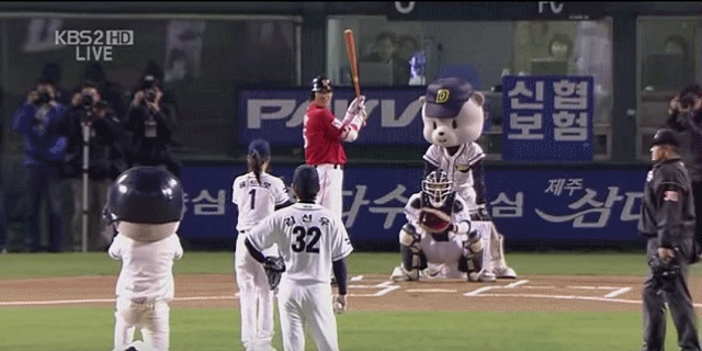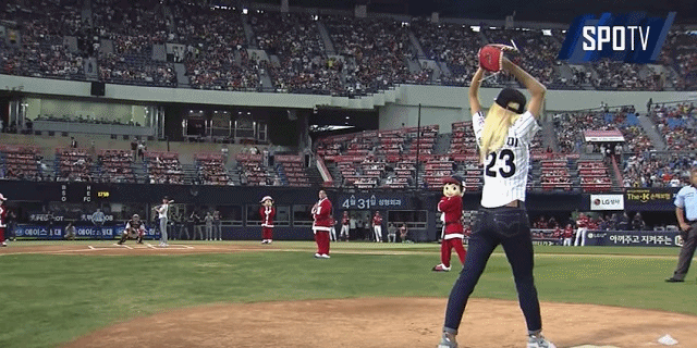 윤보미의 시구를 본 허 위원은 "투수판을 밟고 던져 놀랐다. 아주 좋은 피칭이었다"며 감탄을 자아냈다. 더욱 놀라운 사실은 다섯 손가락을 모두 활용해 투구했다는 것이다. 공을 제구하기에 좋았을지 모르지만, 구속을 올리기엔 썩 좋지 않은 방법이다. 만약, 여느 선수처럼 두 손가락으로 던졌다면 구속은 더 올라가지 않았을까.