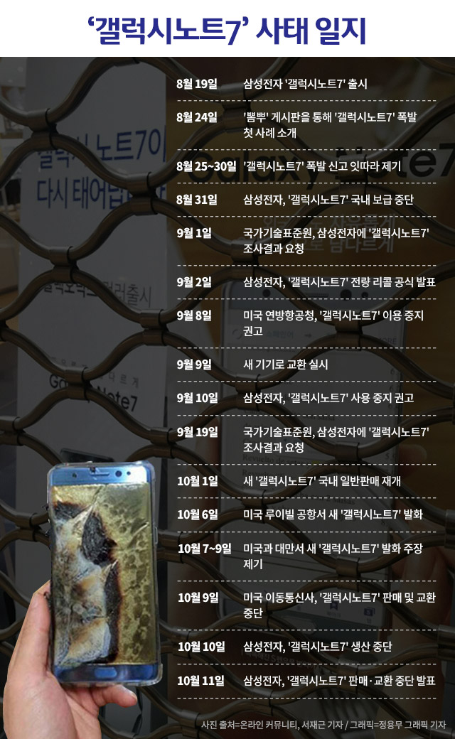 [더팩트ㅣ이성락 기자] 삼성전자가 11일 발화 사고로 문제가 된 '갤럭시노트7'의 생산 및 판매를 중단하기로 했다. '단종' 조치를 취한 것이다. 회사는 생산 중단(단종)을 선택한 이유에 대해 "고객 안전을 최우선으로 고려해 이 같은 결정을 내리게 됐다"고 설명했다.