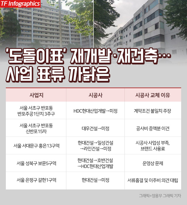 잇단 시공사 교체…'조합 vs 시공사' 법정공방도 잦아[더팩트|윤정원 기자] 최근 원점으로 돌아가는 재개발‧재건축 사업지가 눈에 띄게 늘고 있다. 조합들이 건설사의 계약 위반, 공사비 증액 요구 등을 이유로 기존 시공사 교체에 나서면서 재개발‧재건축 단지의 사업 지연이 당연시되는 추이다.