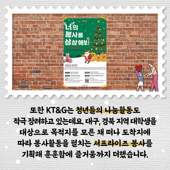 [TF카드뉴스] KT&G, 겨울철 나눔과 봉사활동 릴레이