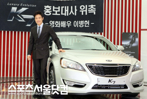 기아차는 자사의 준대형 세단 K7의 홍보대사로 영화배우 이병헌씨를 선정했다고 7일 밝혔다. 이에 앞서 이병헌씨는 지난해 인기 드라마였던 KBS <아이리스>에서 기아차의 K7를 운전한 적이 있다.
