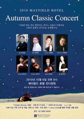 또한, 관람 고객 대상으로 럭키드로우(lucky draw)를 통해 조식을 포함한 숙박권과 2인 뷔페 식사권 등 푸짐한 선물을 선사할 예정이다. 디너(오후 6시부터 7시30분까지)가 포함된 2010 가을 클래식 콘서트 티켓의 가격은 7만7천원이며, 디너가 포함되지 않은 티켓 가격은 3만3천원이다.(모두 세금포함)