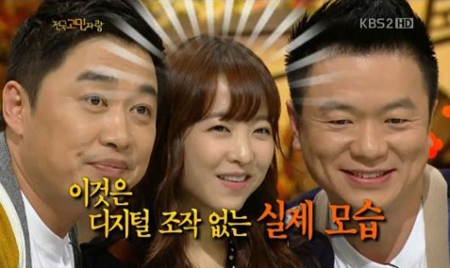 박보영, 정찬우, 김태균 세 사람이 나란히 한 카메라 앵글에 담긴 순간, 폭소가 터져 나왔다. 원근감을 무시한 박보영의 주먹만한 얼굴과 컬투의 솥뚜껑 같은 얼굴 크기가 웃음을 자아냈다.