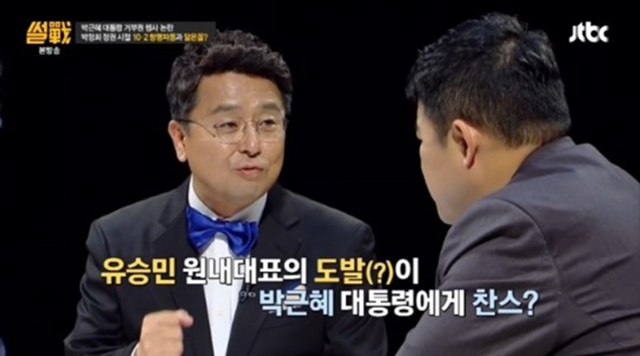 2일 방송된 JTBC 시사 교양 프로그램 '썰전'에서 이철희와 강용석이 유승민 사퇴 관련 논란을 두고 토론했다.
