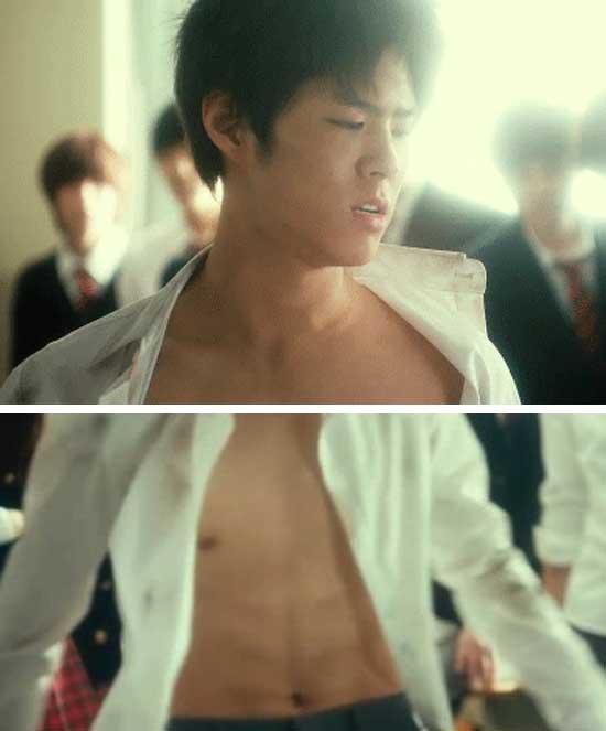 해당 장면에서 박보검은 셔츠를 풀어 헤치고 친구들과 다투는 장면에서 군살없는 상반신을 보였다.