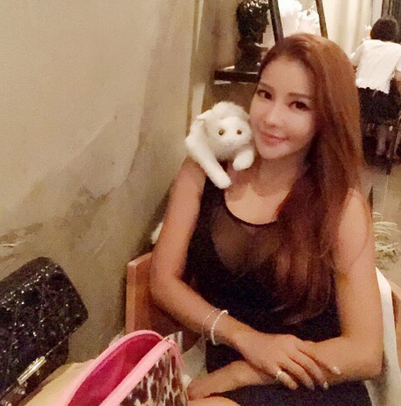사진에는 미나가 어깨에 낸시랭의 코코샤넬을 얹고 의자에 앉아 있다.