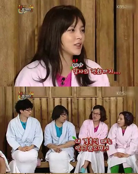 이 말에 유재석은 "결혼식에 가려고 했는데 '해피투게더' 녹화와 겹쳐서 못 갔다"고 미안해 했다.