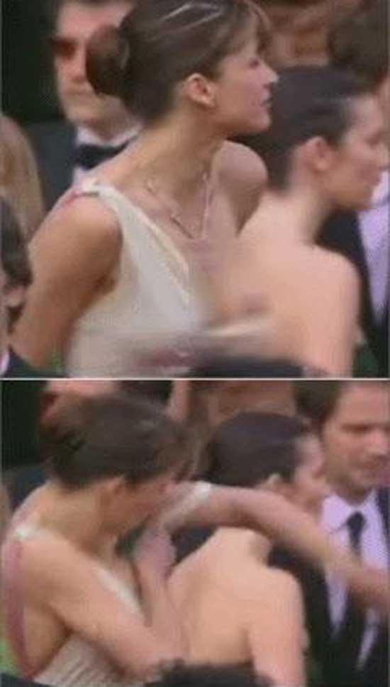 소피 마르소는 깜짝 놀라며 원피스 끈을 올리고 당황스러운 표정을 지었다. 해당 장면이 카메라에 포착돼 인터넷에 급속도로 퍼져나갔다.