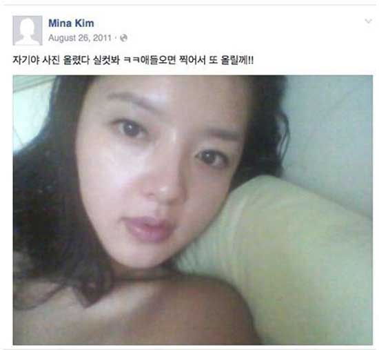 도도맘 김미나 씨는 지난 2011년 자신의 페이스북에 "자기야 사진 올렸다 실컷봐. 애들오면 찍어서 또 올릴게"라는 글과 사진을 올렸다.