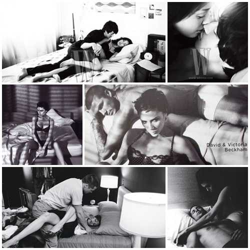 베컴 부부 역시 침대를 배경으로 촬영했다. 이들의 의상과 배경의 완벽한 조화와 어두운 느낌의 블라인드 그림자 효과로 의도하고자 한 콘셉트를 명확히 나타냈다.
