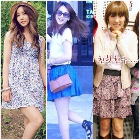 티아라 효민은 데뷔 전 쇼핑몰 모델을 할 정도로 패션에 일가견이 있는 아이돌. 최근 미니홈피를 통해 원피스를 입고 사랑스러운 모습을 공개했다. 플라워 프린트의 민소매 원피스를 입고 밀집모자로 소녀같은 느낌을 살렸다.