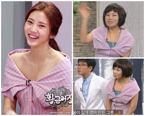 최근 섹시가수 손담비와 중견가수 현숙이 똑같은 핑크 스트라이프 블라우스를 입었다. 손담비는 지난 7월 출연한 MBC-TV '황금어장-라디오스타'에서, 현숙은 KBS-1TV '진품명품'에 이 의상을 선택했다.