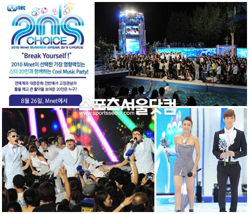 올해로 4회째를 맞는 엠넷 20's 초이스. 20대가 직접 투표에 참여해 후보를 선정하고 수상자를 선택하는 시상식이다. 10대가 투표하는 미국의 '틴초이스어워드'의 한국판으로 모든 시상이 팬들의 손에 의해 이루어진다는 특징이 있다.