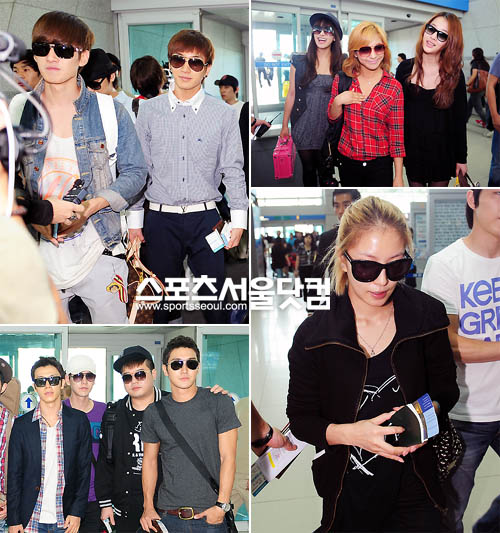 강타, 보아, 유노윤호, 최강창민, 슈퍼주니어, 소녀시대, 샤이니 등 SM 소속 아티스트들은 오랜 비행을 대비한듯 편안한 차림으로 공항에 모였다. 눈에 띄는 것은 선글라스. SM 소속 모든 멤버들은 보잉부터 빅프레임까지 다양한 선글라스를 끼고 나타났다.