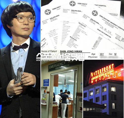 취재팀은 10일 세부닥터병원에서 신정환의 입원내역을 확인했다. 우선 응급실 기록카드에 따르면 신정환은 정확히 7일 오전 11시 20분 병원 응급실을 찾았다. 간단한 피검사와 소변검사 등을 마친 뒤 퇴실한 시간은 오후 12시 45분. 이후 일반실로 자리를 옮겼고, 다음날 퇴원했다.