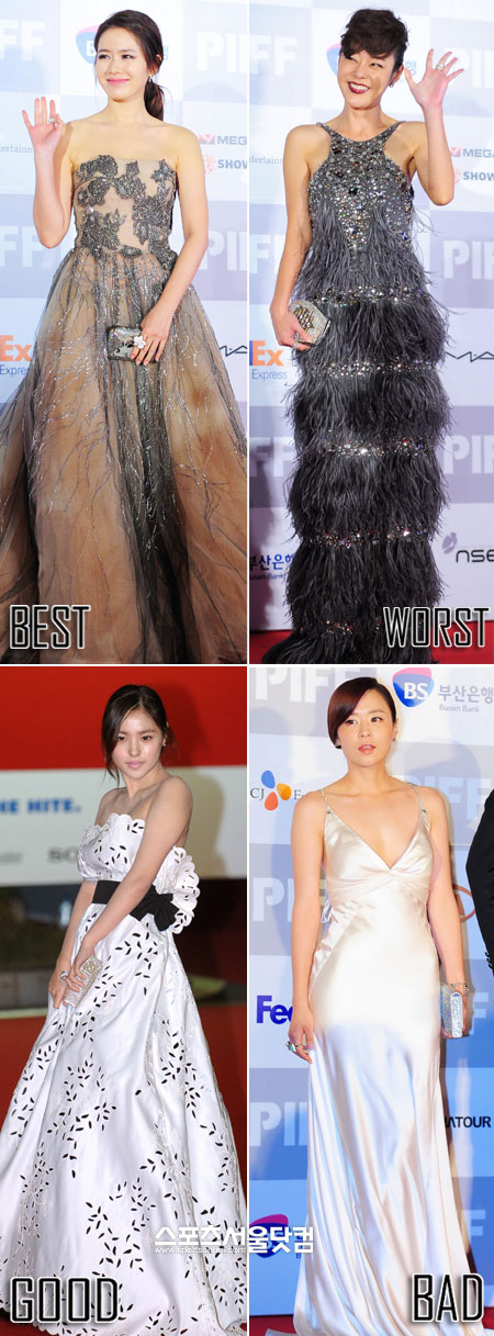 더팩트은 제15회 부산국제영화제 베스트&워스트 드레서를 선정했다. 베스트 드레서는 개성 없는 레드카펫에서 화려한 드레스를 무난하게 소화한 손예진에게 돌아갔다. 워스트 드레서는 보기만 해도 부담스러운 의상과 메이크업으로 치장한 김윤진이 선정됐다.