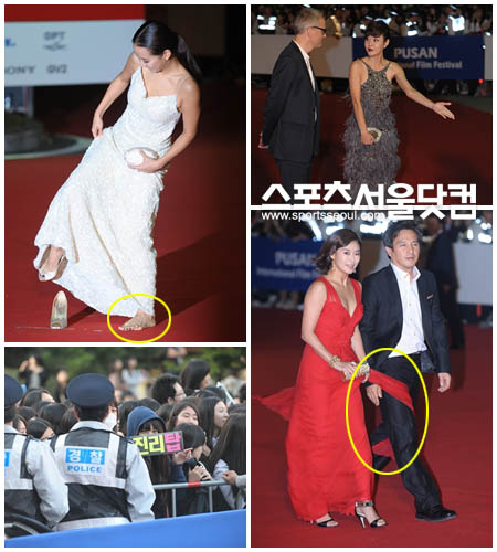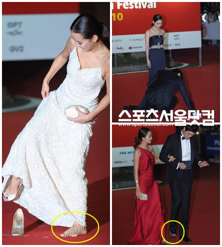 조여정은 레드카펫에서 맨발을 보여주는 굴욕을 맞봤다. 바닥에 붙여진 양면 테이프로 인해 한 쪽 구두가 벗겨진 것. 조여정은 순간 얼른 구두를 챙겨신었지만 이미 수십대의 카메라가 레드카펫 위 맨발을 포착한 후였다.
