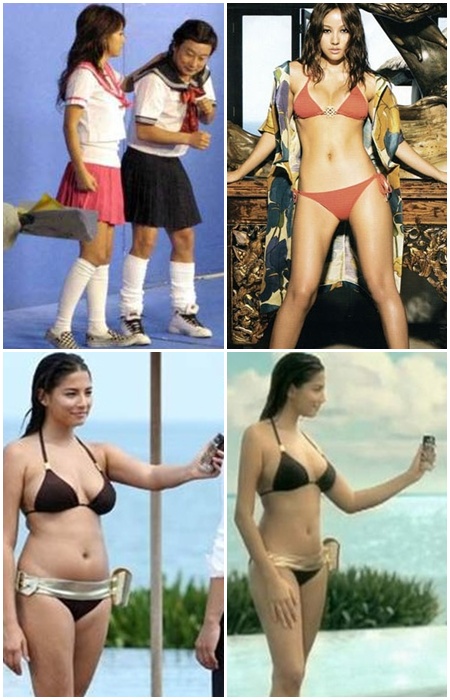 미녀스타의 몸매는 타고난 것과 운동으로만 만들어지는 것은 아니다. 때로는 컴퓨터의 힘을 빌려 완벽한 몸매를 만들기도 한다. 스타들은 사진 보정을 이용해 잘록한 허리라인과 긴 다리, 군살 하나 없는 복근으로 몸매를 보완한다.