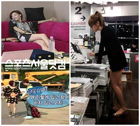 제시카 역시 최근 하의 실종 사진을 공개했다. 제시카는 긴 검은색 카디건에 핫팬츠를 매치해 바지가 거의 보이지 않는 모습이었다. 플랫 슈즈에 뿔테 안경을 쓴 편안한 모습이지만 늘씬한 각선미는 숨길 수 없었다.