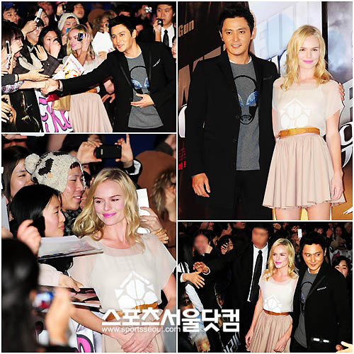 [ 이현경기자] 장동건과 케이트 보스워스가 할리우드 스타일 팬서비스로 수 백여명의 팬들을 감동시켰다. 두 사람은 시종일관 환한 미소를 지으며 팬들의 호응에 화답했다.