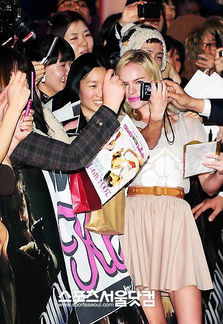 두 사람은 톱스타다운 면모도 유감없이 발휘했다. 약 20m의 레드카펫을 걷는 내내 일일히 팬들에게 인사를 건넸다. 손을 잡아주기도 하고 팬들의 카메라에 포즈를 취해주기도 했다. 특히 보스워스는 팬들의 사인 공세에 흔쾌히 응하며 세계적 톱스타다운 팬 서비스를 선보였다.