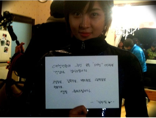 하지원은 SBS-TV '시크릿가든' 촬영 현장에서 현빈의 명품 트레이닝복을 입고 "애칭 만들어주신 모든 팬 여러분 진심으로 감사 드립니다"고 적힌 쪽지를 들었다. 이어 "내일 밤 7화 기대바랍니다^^"라며 팬들에게 당부의 말도 전했다.