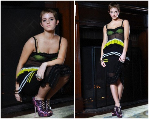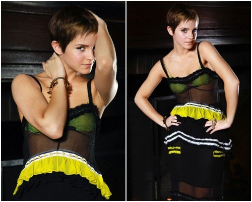 왓슨의 모습은 섹시 그 자체였다. 왓슨은 연두빛 란제리를 입고 독특한 문양의 망사 원피스를 입었다. 하의는 완벽한 치마였지만 상의는 망사때문에 그대로 노출됐다. 가슴라인에 레이스 장식이 더해진 시스루 의상은 묘한 섹시함을 자아냈다.