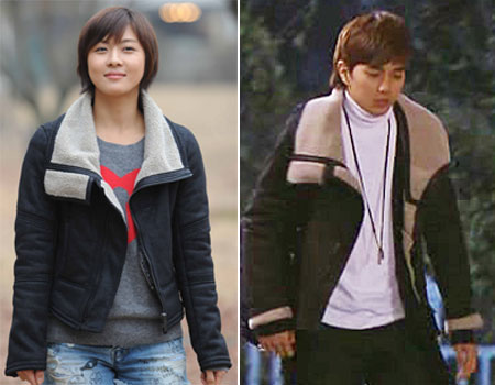하지원과 유승호가 같은 무스탕을 입었다. 하지원은 지난 8일 경기도 여주 마임비전빌리지에서 열린 SBS -TV '시크릿가든' 현장공개에서, 유승호는 지난달 18일에 방송된 MBC-TV '욕망의 불꽃' 16회에서 입었다.