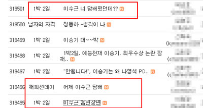 하지만 방송 내용 가운데 이수근이 흡연을 하는 것으로 의심되는 장면이 방송돼 네티즌 수사대의 집중적인 공격을 받고 있다. 문제의 영상은 설거지 내기에서 진 강호동이 밖에서 설거지를 하는 장면에서 나왔다. 건물 곳곳에 숨어있던 고정카메라에 이수근이 부엌 근처에서 몰래 담배를 피는 듯한 모습이 잡힌 것.