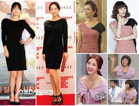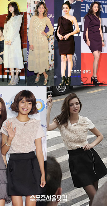 분명 똑같은 의상이지만 입는 사람의 분위기와 체형 그리고 연출에 따라 느낌은 전혀 달랐다. 먼저 누군가 입은 옷이 자명하다면 카디건과 액세서리 등을 이용하여 자신만의 개성과 매력을 드러냈다. 2010년 스타들의 마음을 훔쳤던 같은 옷은 어떤 것이었고 또 누구와 같은 옷을 입었는지 살펴봤다.