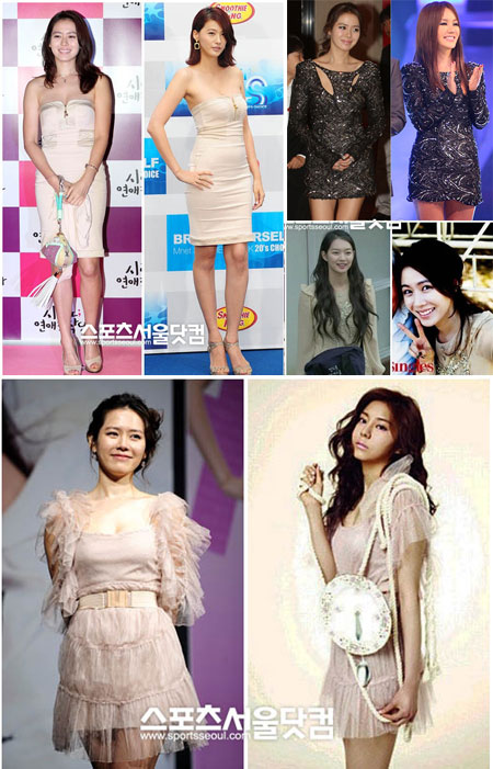 2010년 가장 많은 의상이 겹친 스타는 바로 손예진이다. 올해 보여준 활발한 활동을 짐작하게 했다. 손예진의 옷은 4차례나 다른 스타들과 같았다. 공식석상에 모습을 자주 드러내면서 다른 스타와 옷이 겹치는 횟수와 확률도 동반 상승한 것.