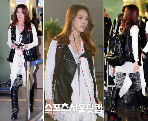두 사람의 공항 패션을 한 단계 업그레이드 시켜준 것은 가죽 백팩이었습니다. 가희는 블랙 가방을, 유이는 베이지색 백팩을 들었더군요. 캐쥬얼하면서도 스타일리시했습니다. 여기에 실용성까지 겸비했으니, 공항패션 아이템으로는 더할 나위 없었습니다.