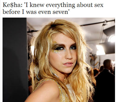 18일(현지시간) NY 데일리의 보도에 따르면 케샤는 ContactMusic.com과의 인터뷰에서 "나는 섹스에 관한 모든 것을 7살 이전에 알았다" 라는 파격적인 발언을 했다.