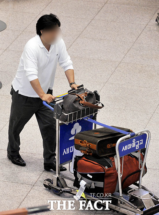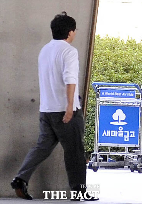 [더팩트 | 인천공항 = 김지혜·서보현기자] 3일 오후 5시 호놀룰루발 KE052편, 정확히 하루 차를 두고 이영애의 남편 정 씨가 한국땅을 밟았다. 흰색 티셔츠에 짙은 회색 면바지를 착용한 그는 175cm의 키에 시원스러운 이목구비가 돋보이는 호남이었다.