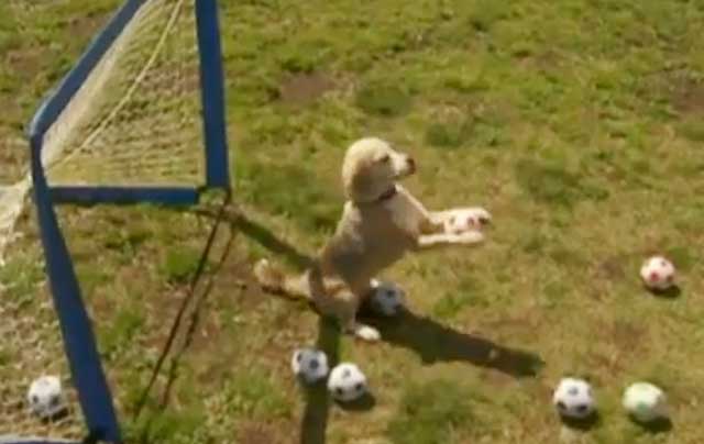 10일 동영상 전문 채널 유튜브에 올라온 이 영상은 푸린이라는 이름의 9살짜리 암컷 비글이 미니 골대 앞에서 주인이 던지는 공을 막아내는 장면이 담겨 있다.